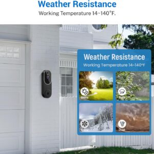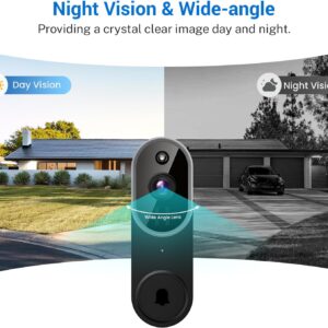 1080P Video Doorbell Camera Wireless, Chime Ringer Included, Live View, AI Human Detection, 2.4G WiFi, Night Vision, Cloud Storage, Battery Powered, Indoor Outdoor Surveillance