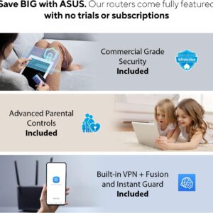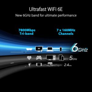 ASUS RT-AXE7800 Tri-band WiFi 6E (802.11ax) Router, 6GHz Band, ASUS Safe Browsing, Upgraded Network Security, Instant Guard, Built-in VPN Features, Parental Controls, 2.5G Port, AiMesh Support