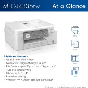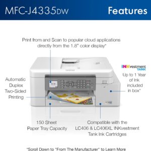 Brother MFC-J4335DW INKvestment Tank All-in-One Printer with Duplex and Wireless Printing Plus Up to 1-Year of Ink in-Box