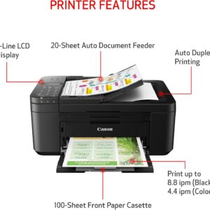 Canon PIXMA TR4720 All-in-One Wireless Printer, Home Use with Auto Document Feeder, Mobile Printing and Built-in Fax, Black