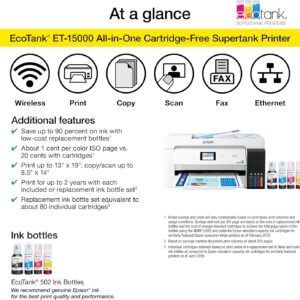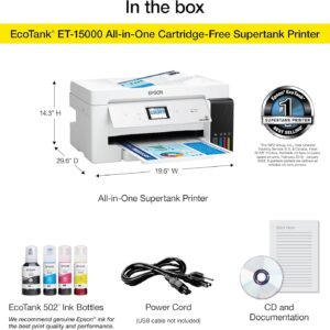 Epson EcoTank ET-15000 Wireless Color All-in-One Supertank Printer with Scanner, Copier, Fax, Ethernet and Printing up to 13 x 19 Inches, White