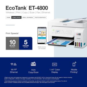 Epson EcoTank ET-4800 Wireless All-in-One Cartridge-Free Supertank Printer with Scanner, Copier, Fax, ADF and Ethernet – Ideal-for Your Home Office, White