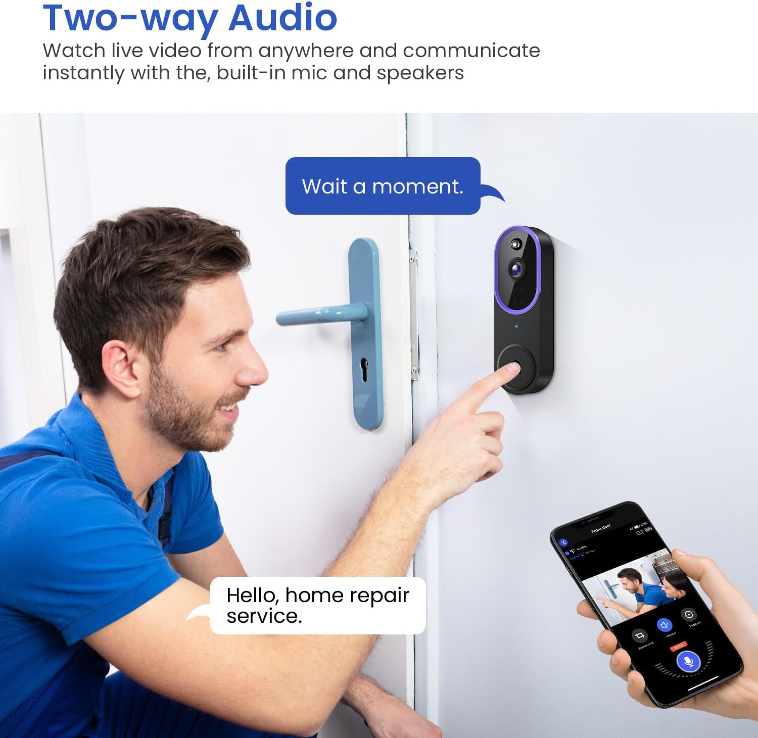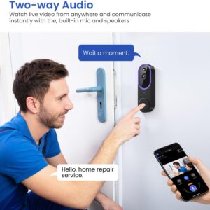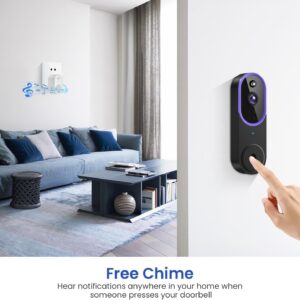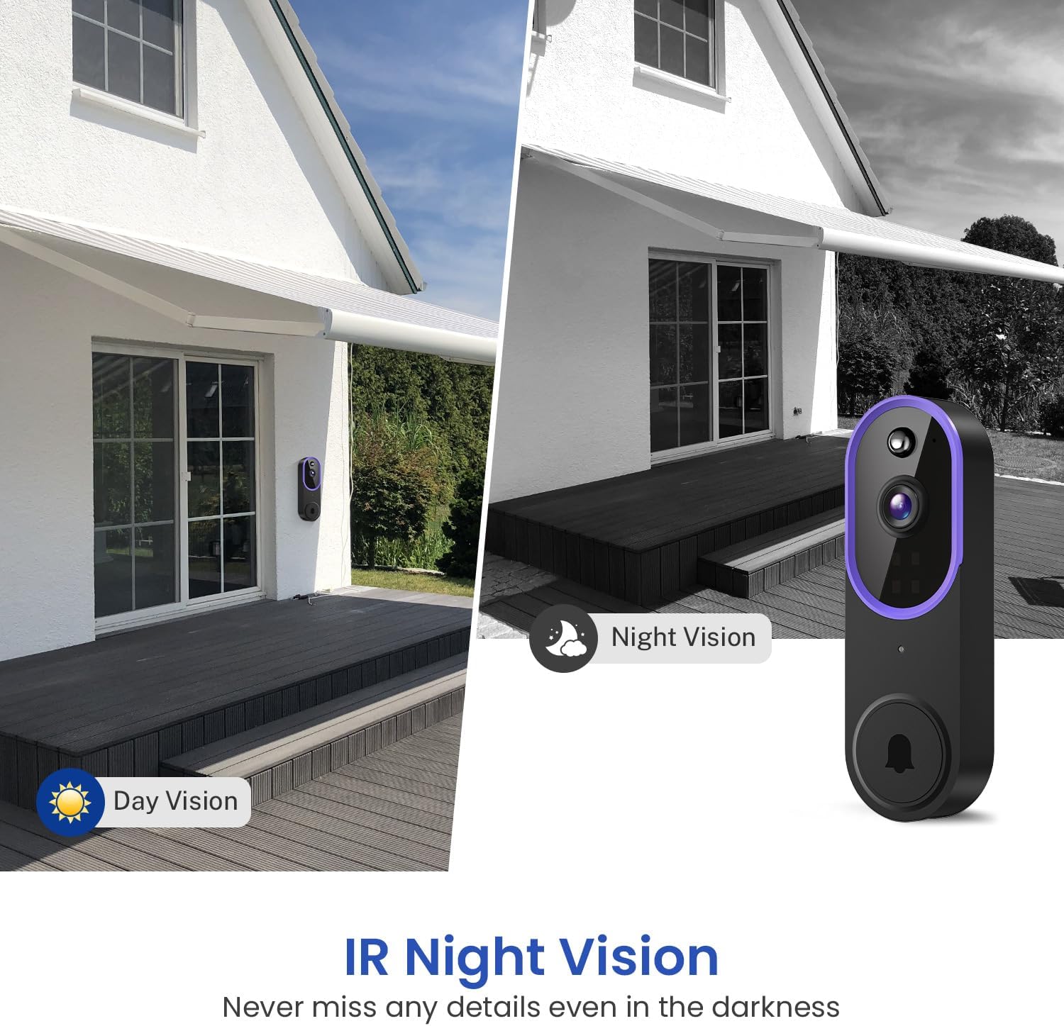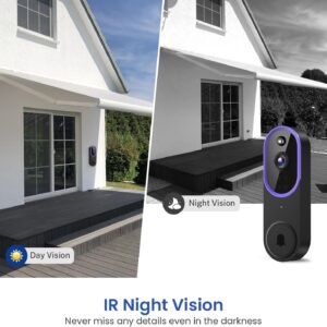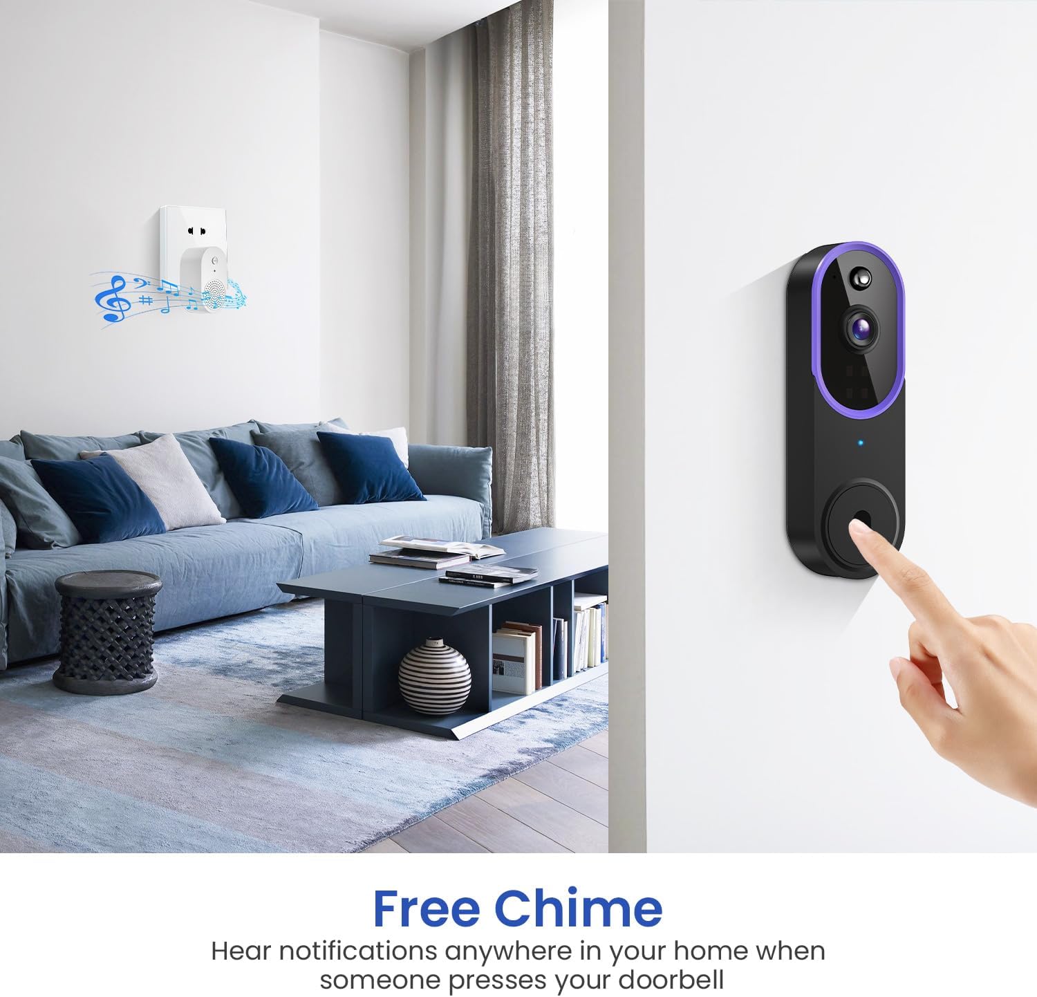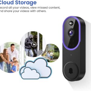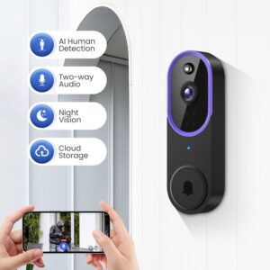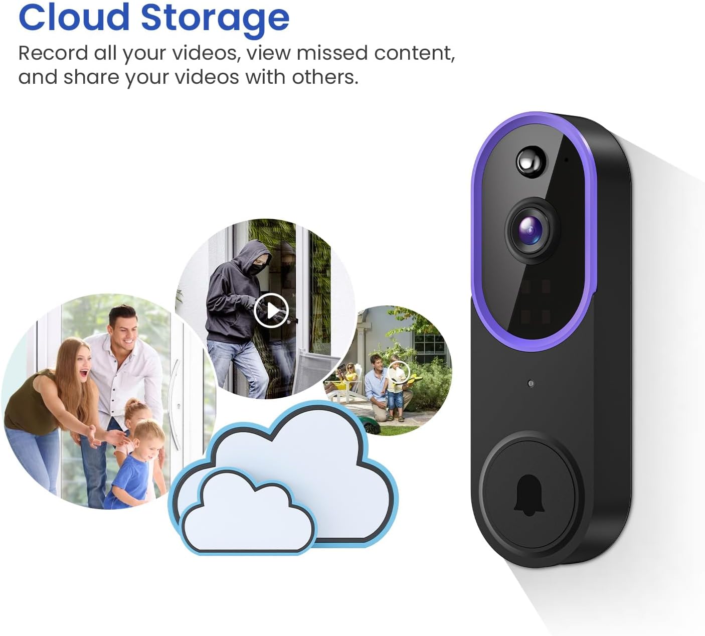 Smart 1080P Video Doorbell Camera Wireless, AI Human Detection, Live View, 2-Way Audio, Included Chime, Night Vision, 2.4G Wi-Fi, Cloud Storage, Indoor/Outdoor Surveillance Cam (Purple)