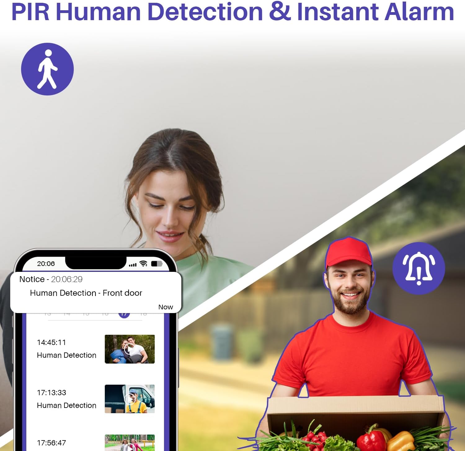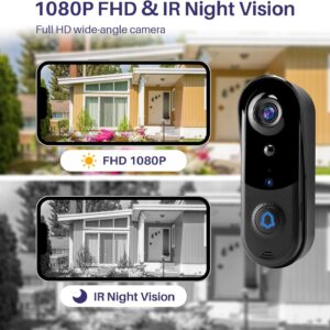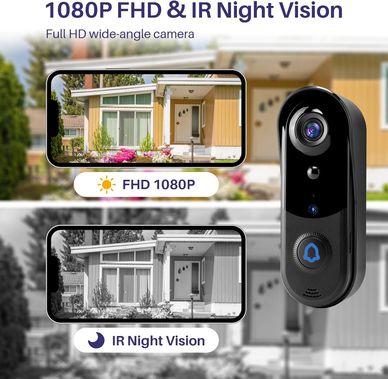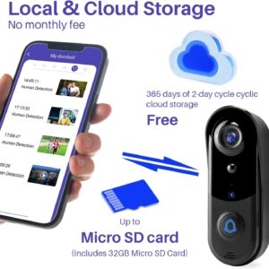 Wireless Video Doorbell Camera with Chime, Smart Home Surveillance Indoor/Outdoor, No Monthly Fee, AI Human Detection, Two Way Audio, Live View, Night Vision, 2.4G WiFi, with 32G SD Card Storage